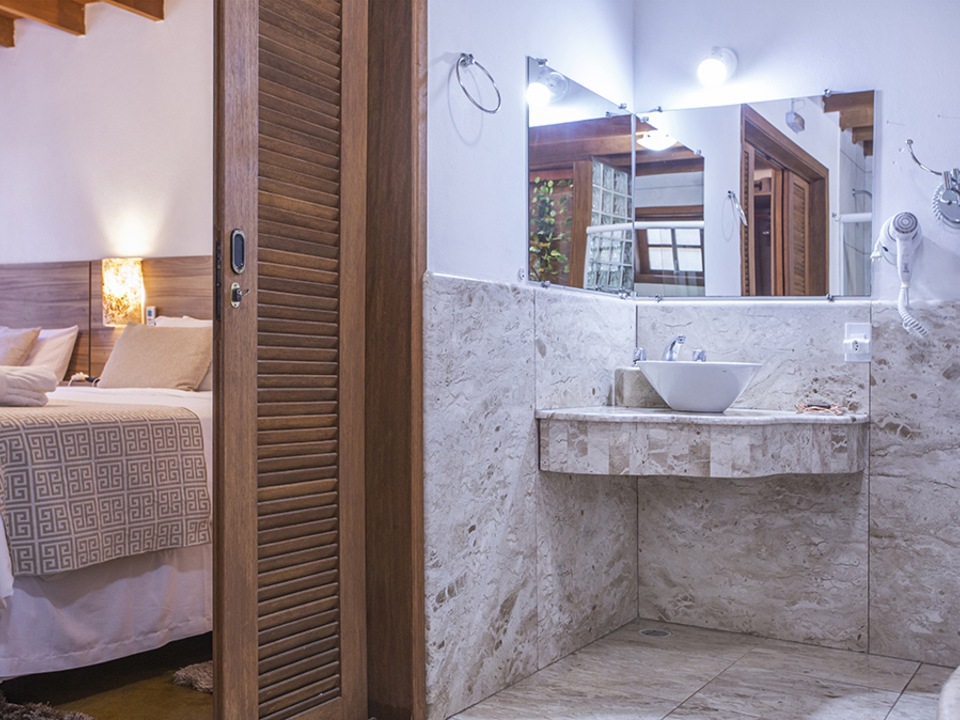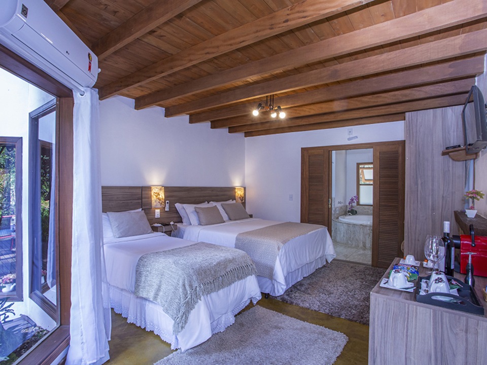 Unidade pet friendly localizada em frente ao deck com vista para o jardim da Pousada