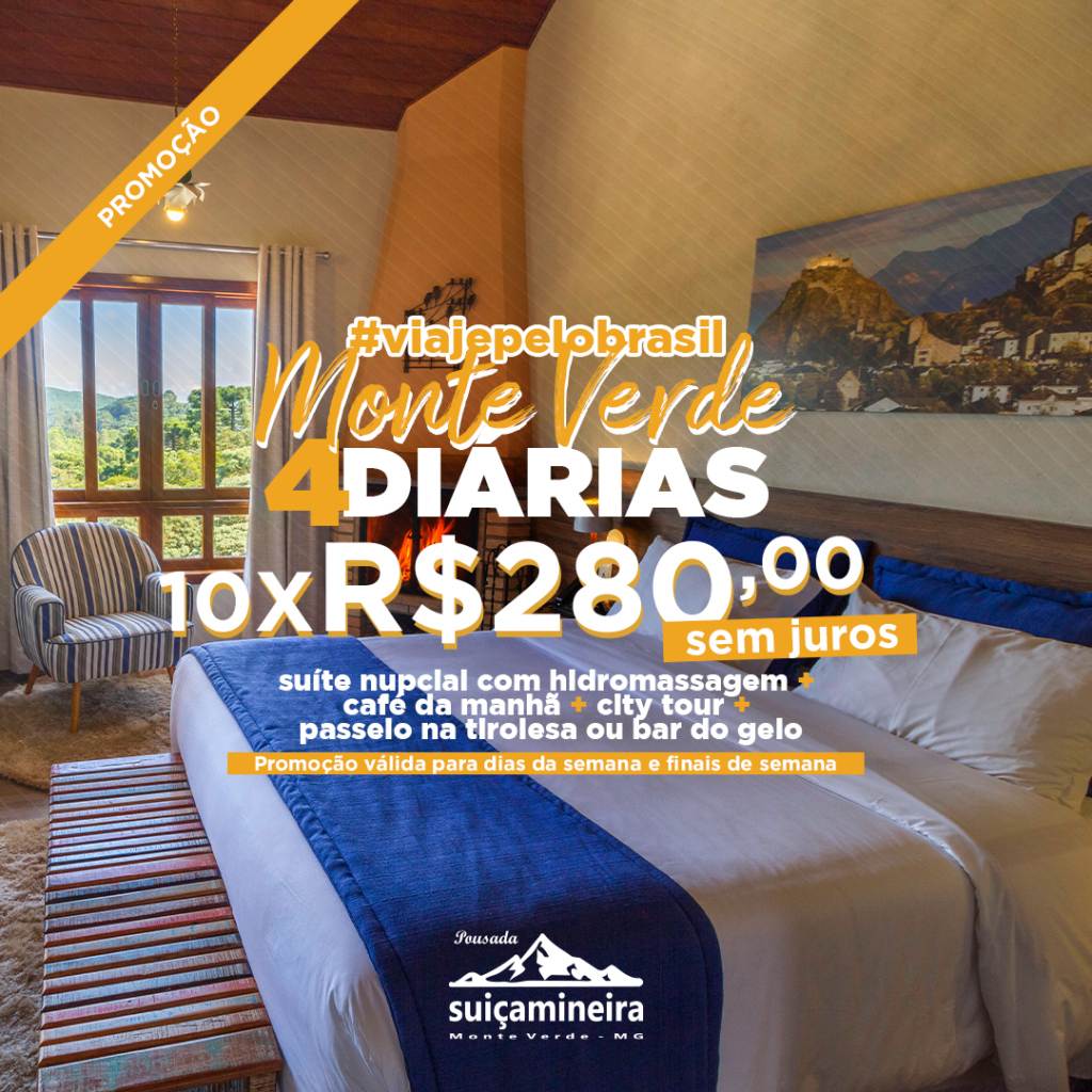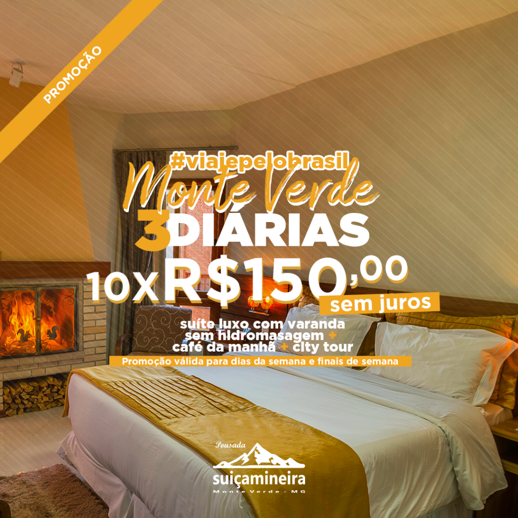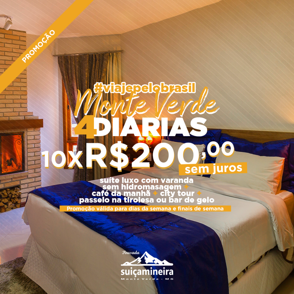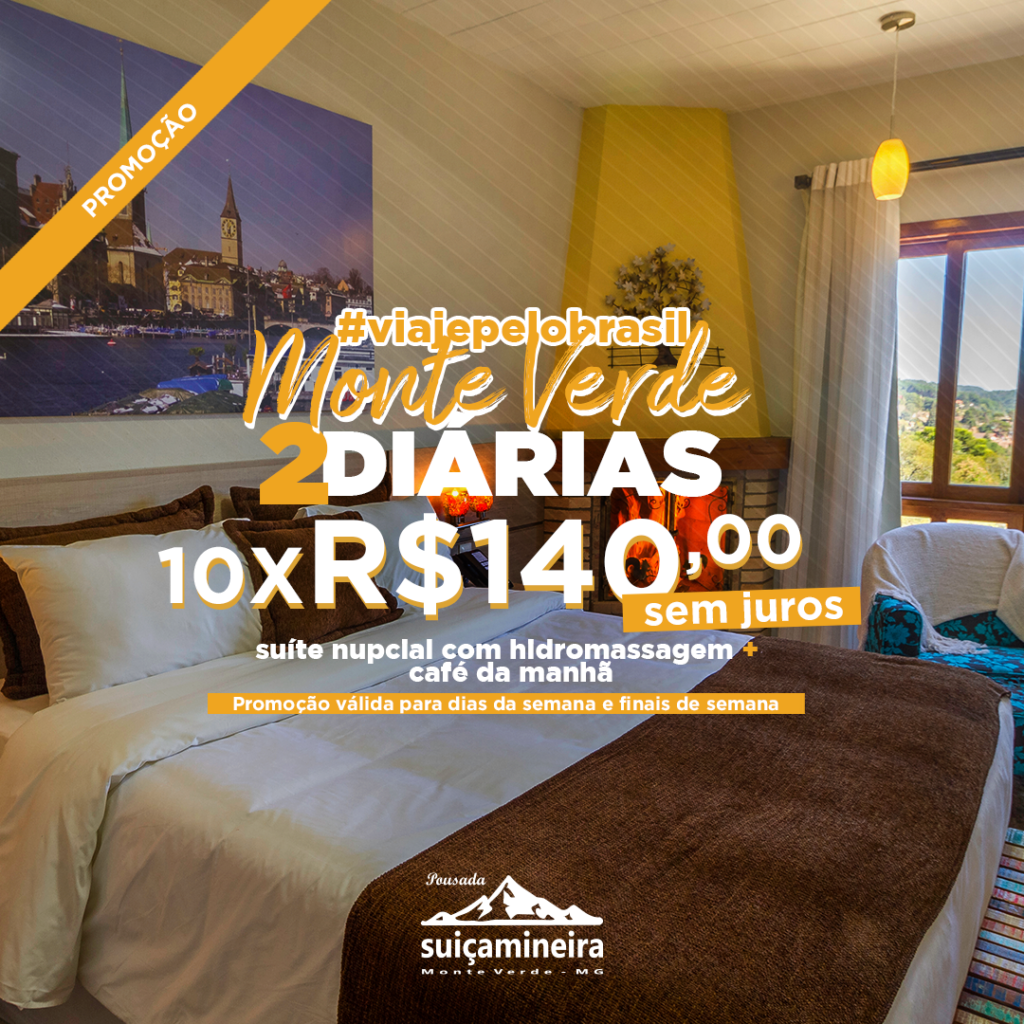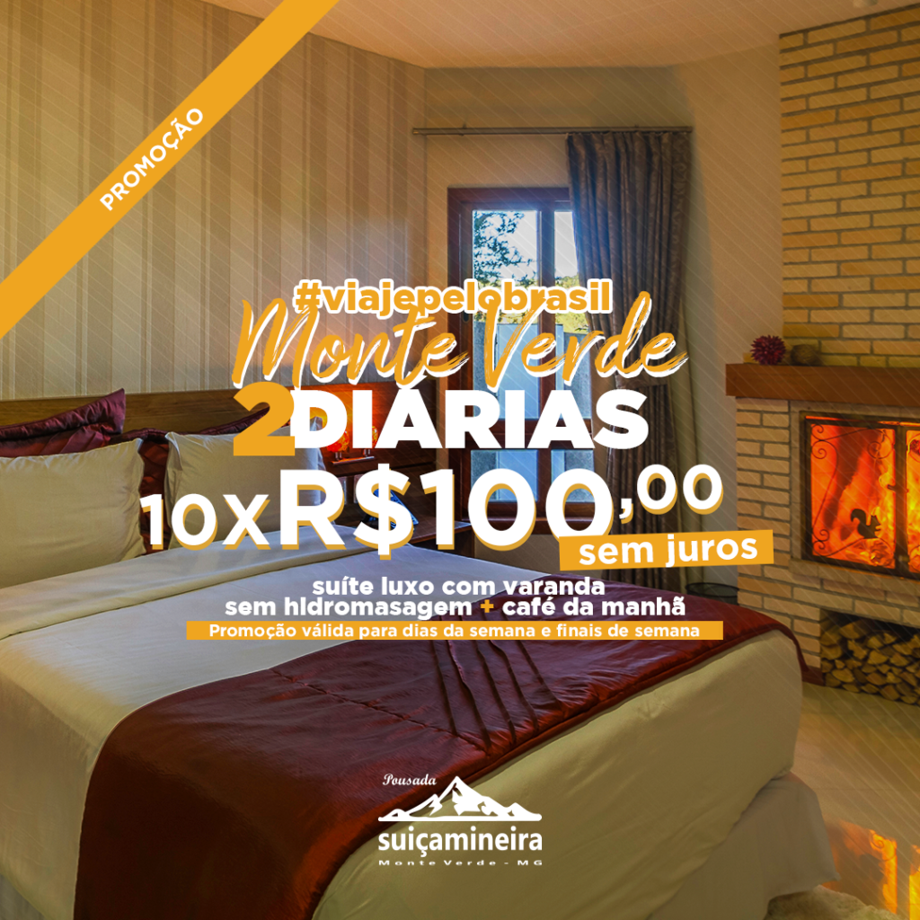 Pensando nisso, a Suiça Mineira preparou vouchers promocionais para deixar sua viagem ainda mais perfeita. Os vouchers promocionais podem ser utilizados em reservas de setembro de 2020 até maio de 2021, e são válidos para diárias para qualquer período, incluindo finais de semana, exceto feriados nacionais.